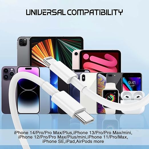 - [Ideal Length ] : The 1m long compatible for i phone cable offers convenient flexibility, making it ideal for use at home, in the office, or on the go. Perfect for charging without the hassle of cable length shortage